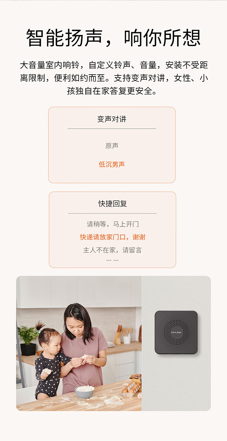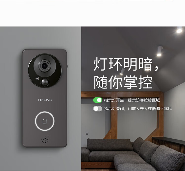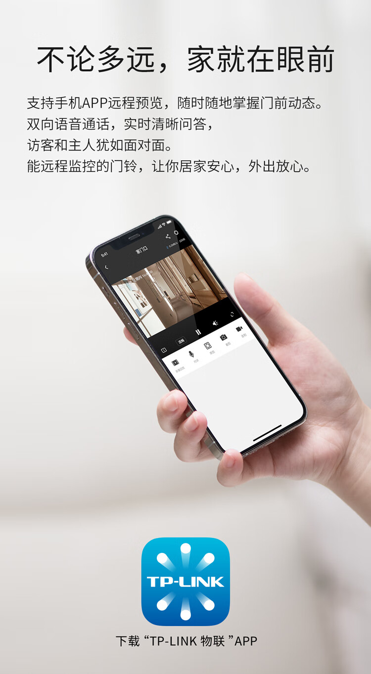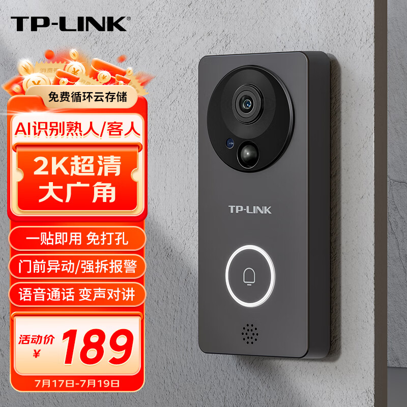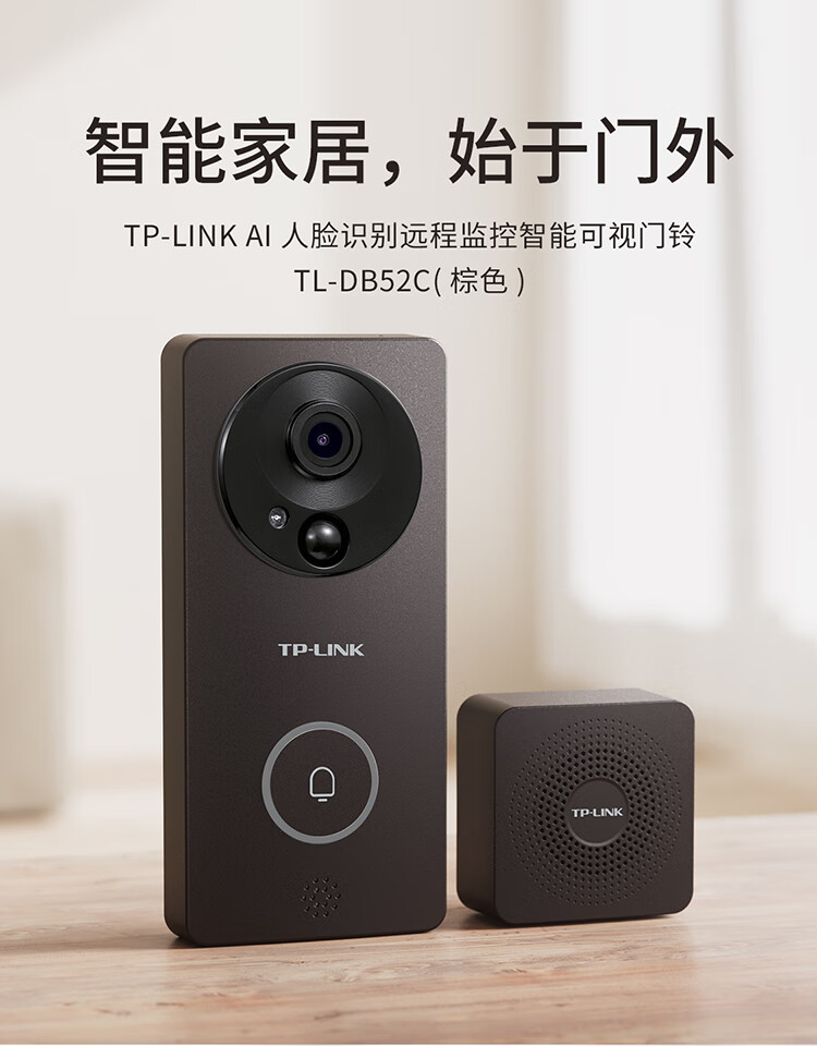TP-LINK 可视门铃摄像头家用监控 智能门铃对讲电子猫眼 无线wifi手机远程访客识别视频通话超清夜视 DB52C棕 自营