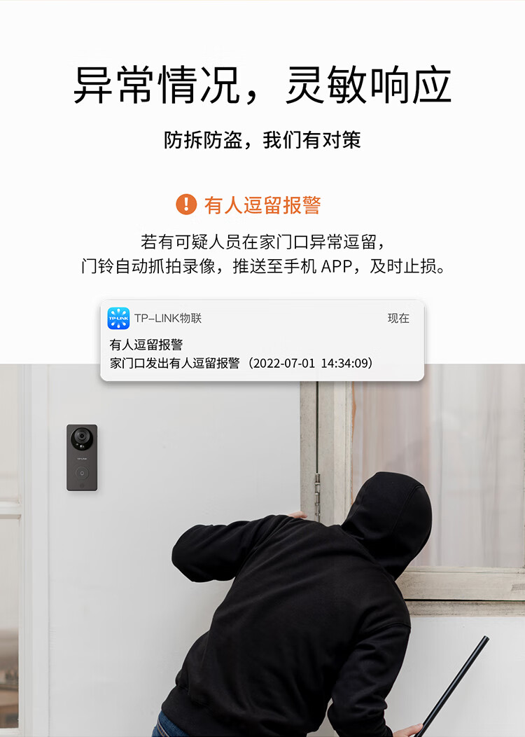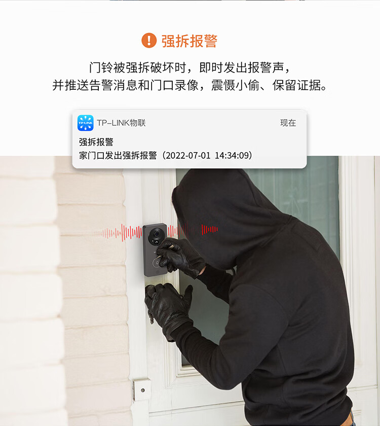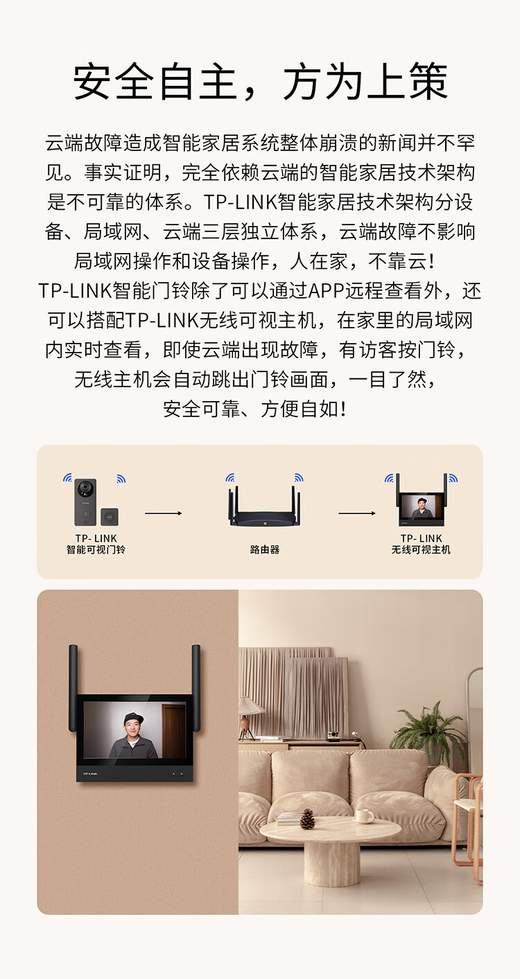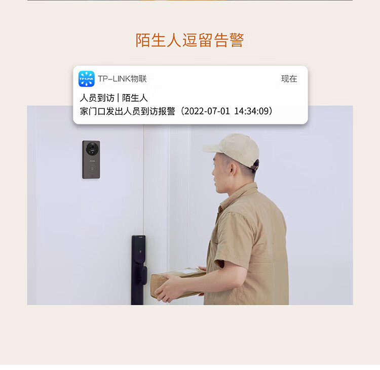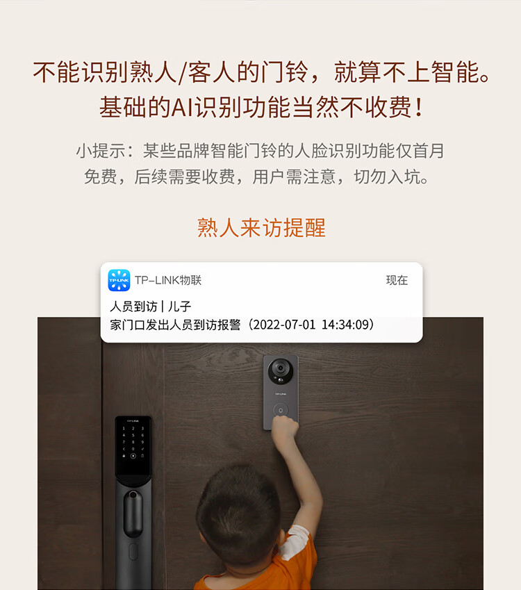 TP-LINK 可视门铃摄像头家用监控 智能门铃对讲电子猫眼 无线wifi手机远程访客识别视频通话超清夜视 DB52C棕 自营
