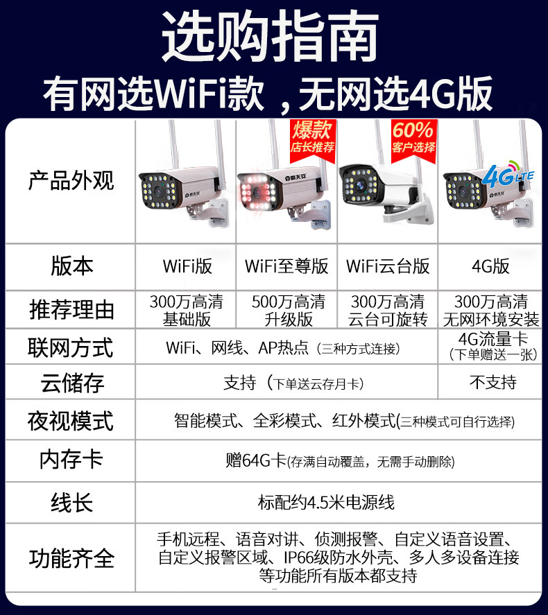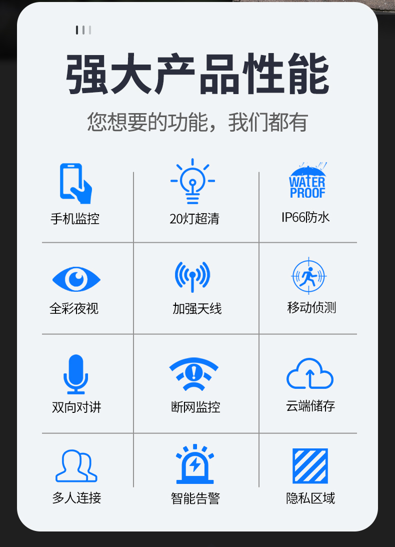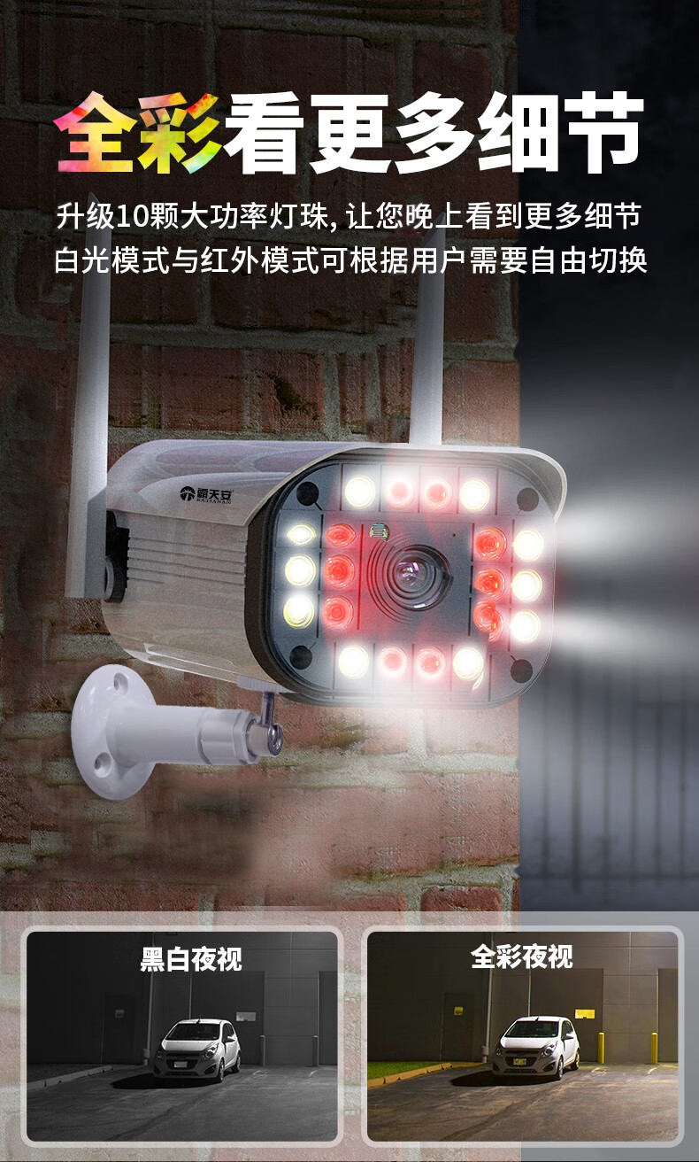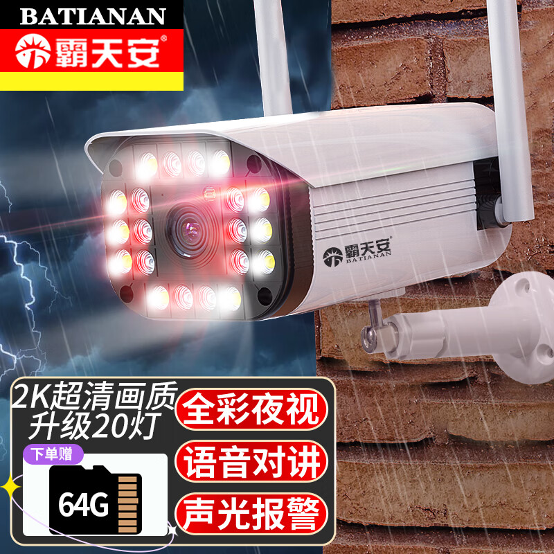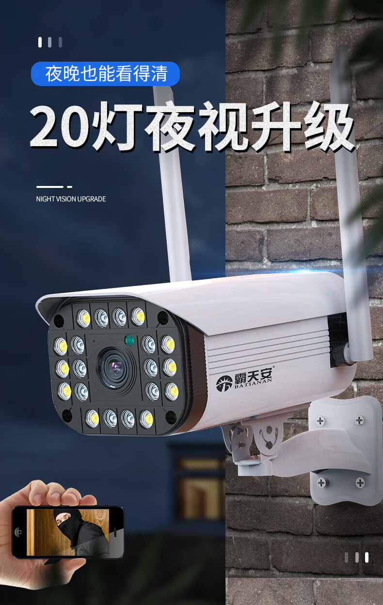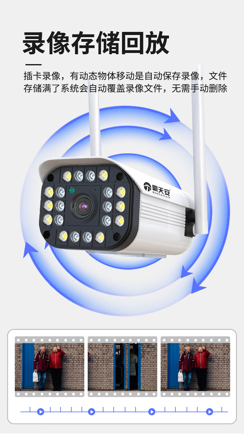 霸天安无线摄像头监控4g网络高清监控器家用室外防水wifi手机远程商用户外工程农村监控设备套装 【WiFi版】支持10倍放大+全彩夜视+语音对讲 自营