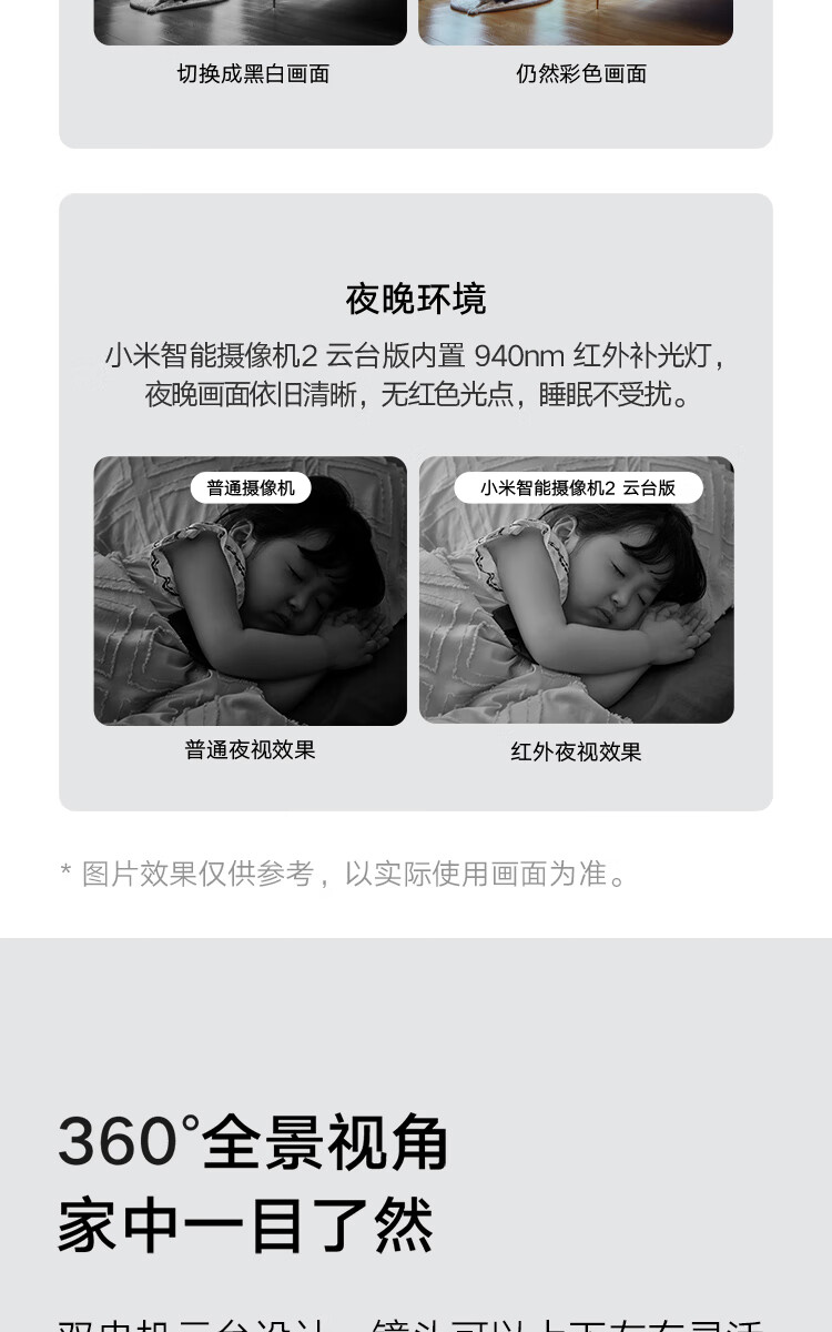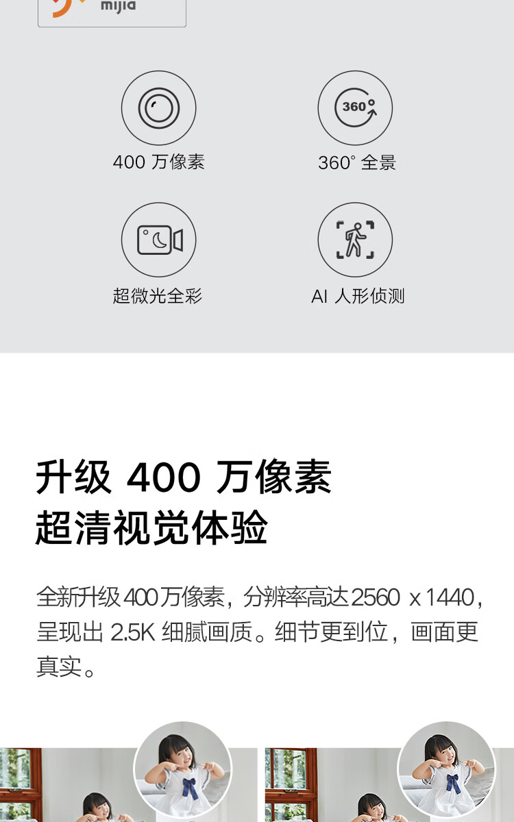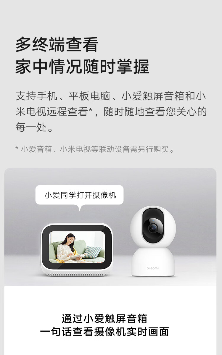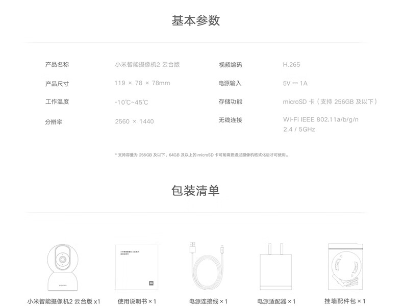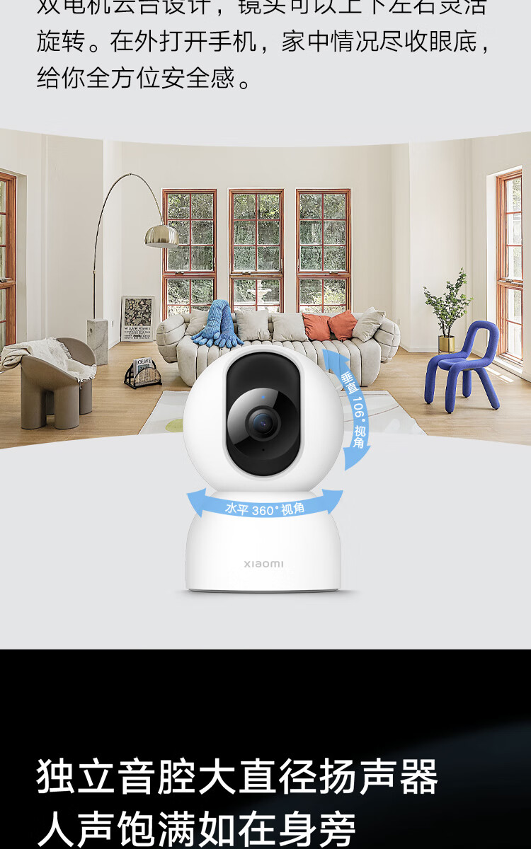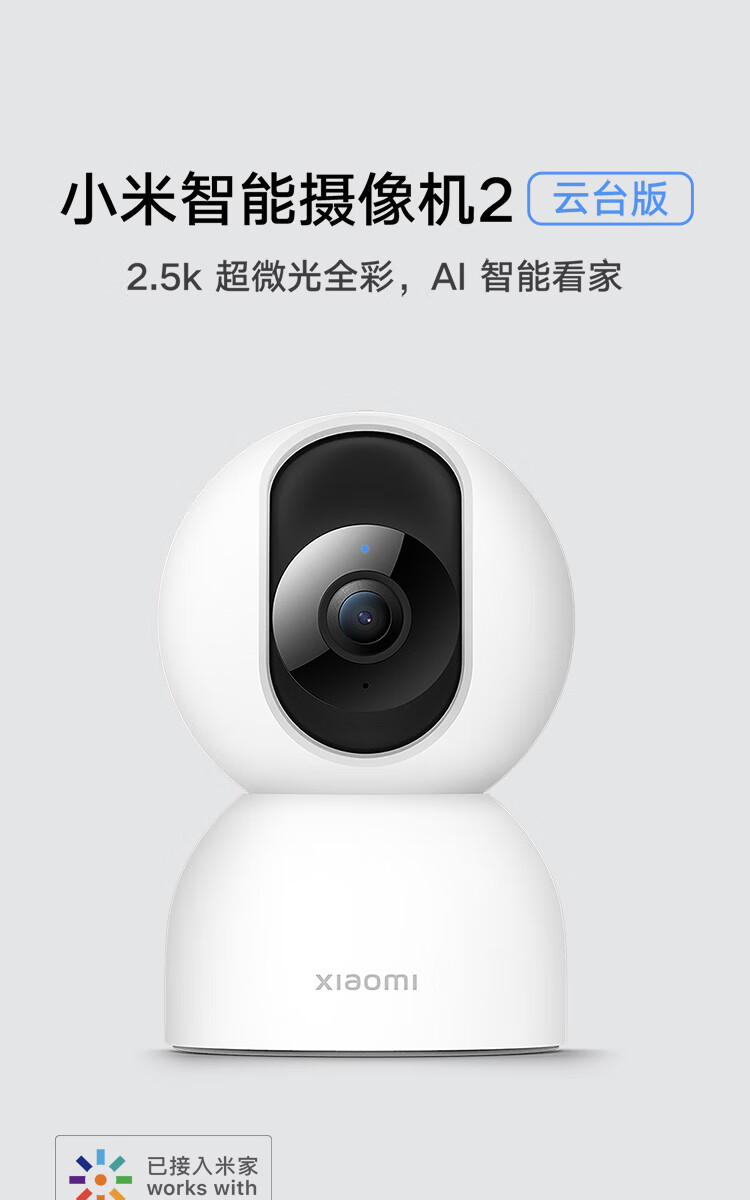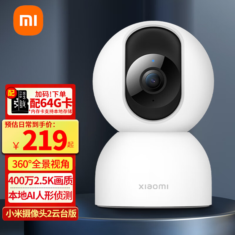 小米摄像头2云台版 2.5K家用400W像素监控器红外夜视智能宠物监控摄像机儿童视频双向语音支持5G 摄像头2+64G内存卡 自营