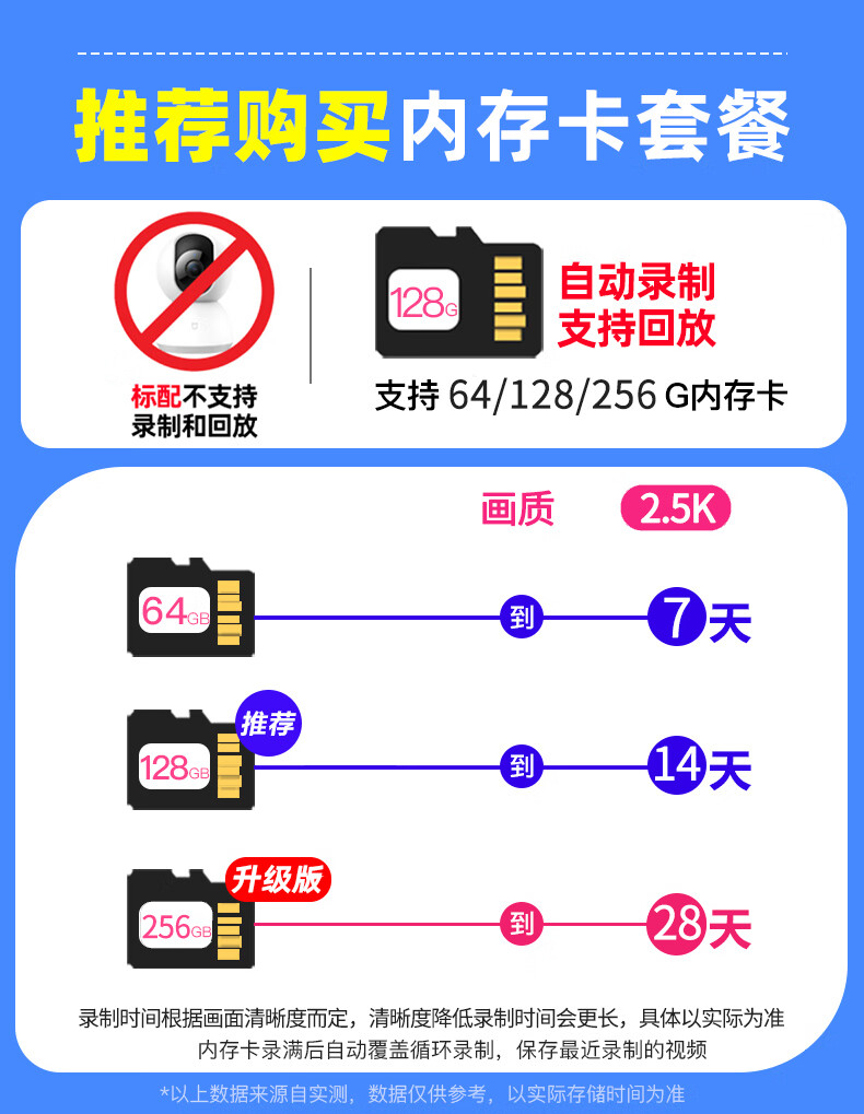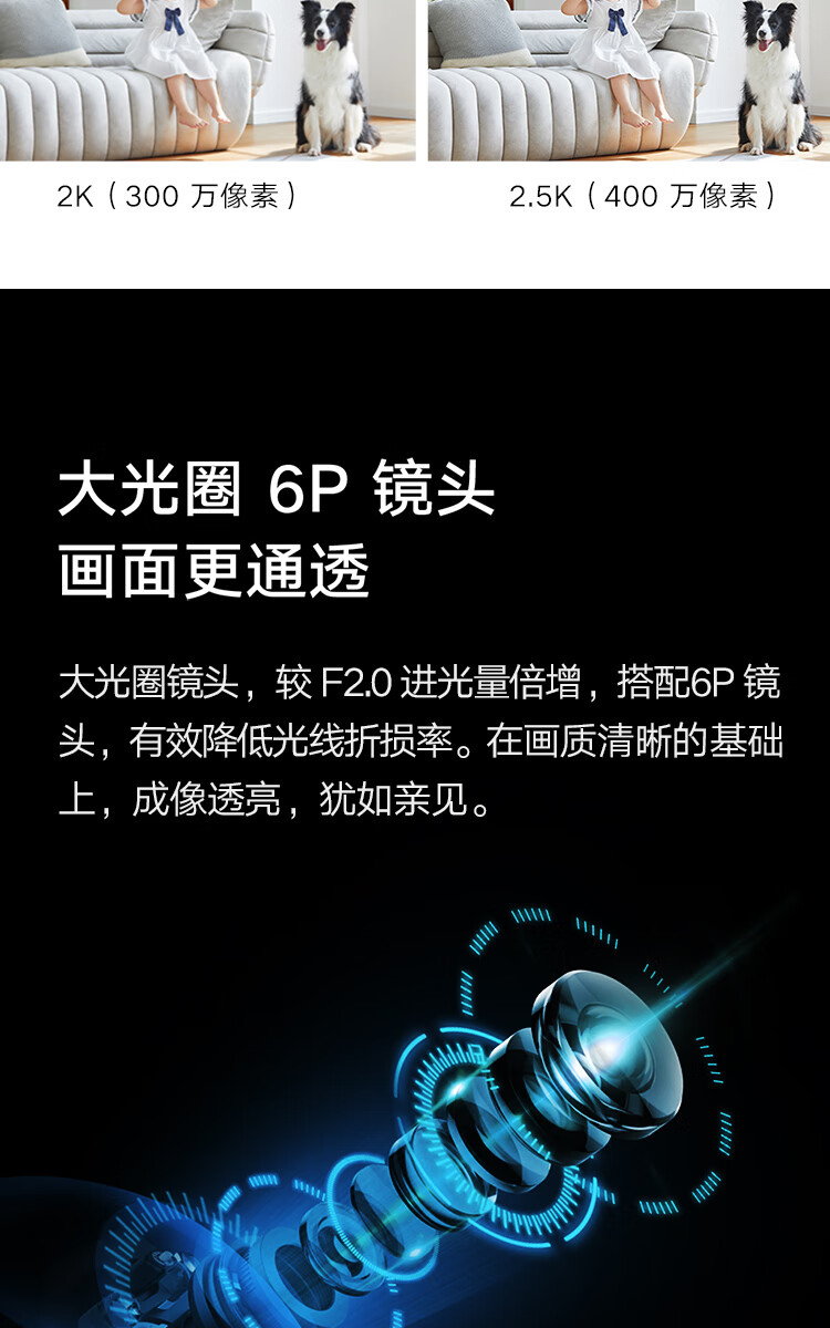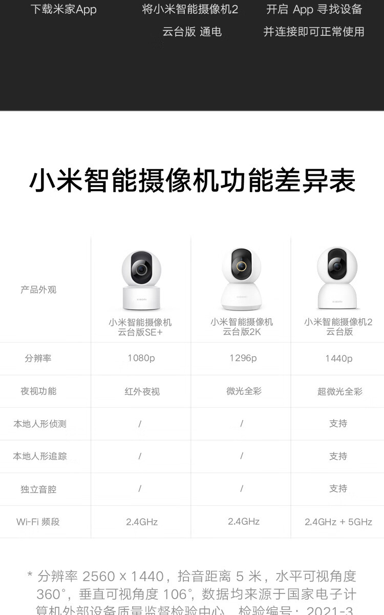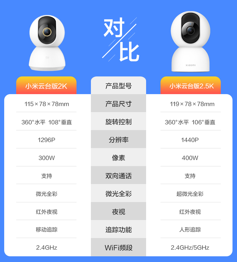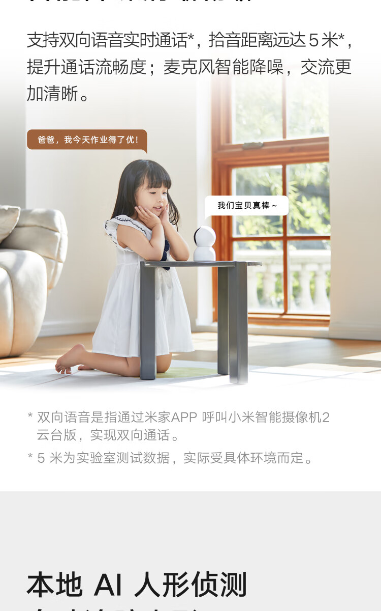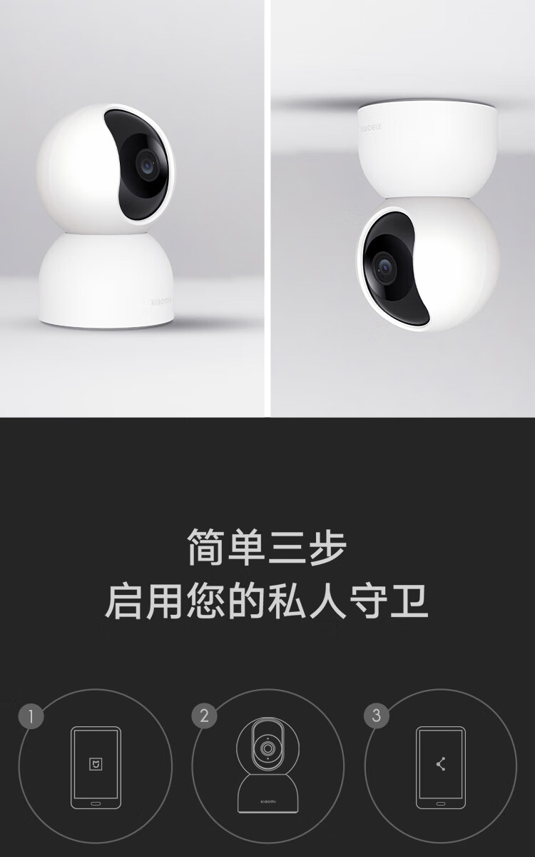 小米摄像头2云台版 2.5K家用400W像素监控器红外夜视智能宠物监控摄像机儿童视频双向语音支持5G 摄像头2+64G内存卡 自营