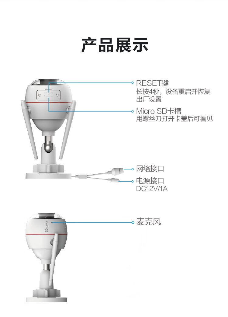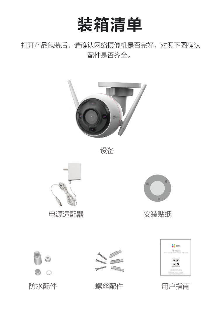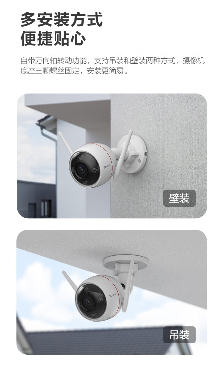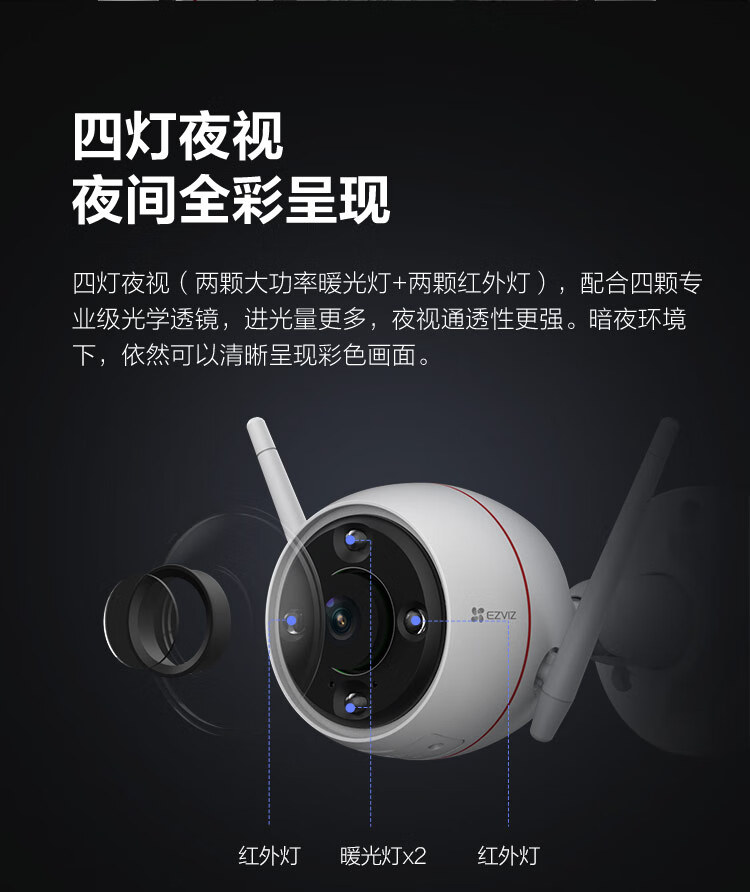 萤石(EZVIZ)C3W 1080P全彩拾音版 2.8mm+32G视频监控专用卡 自营