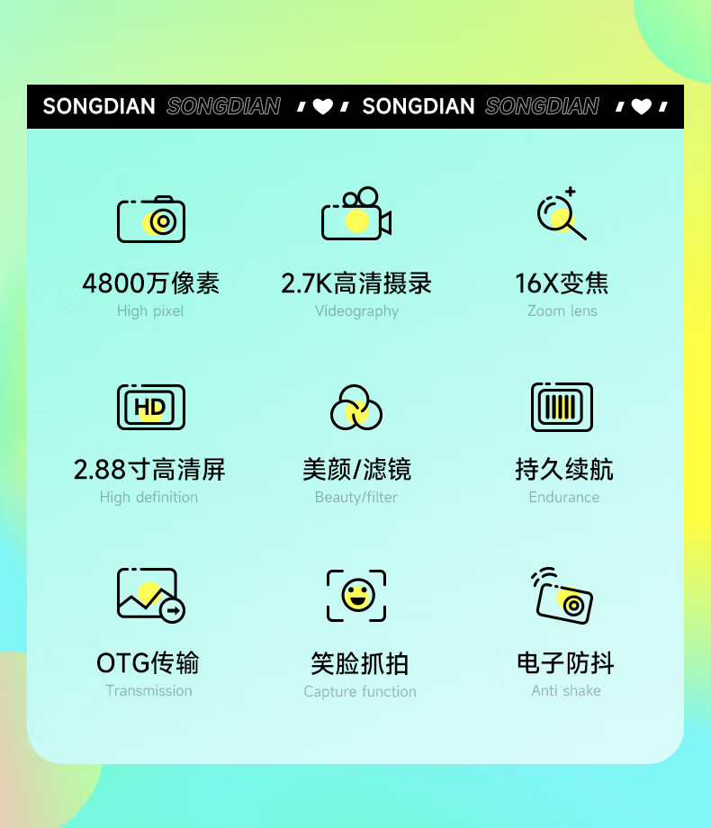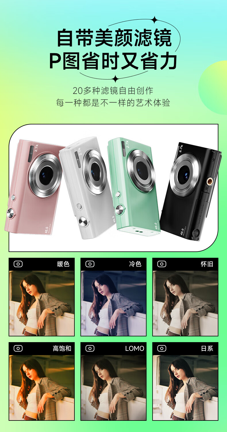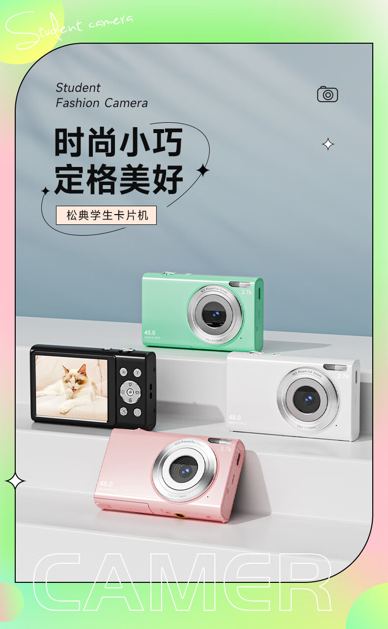 松典(SONGDIAN) 数码相机学生高中生迷你ccd小卡片机高清微单校园照相机 象牙白 64G 内存 自营