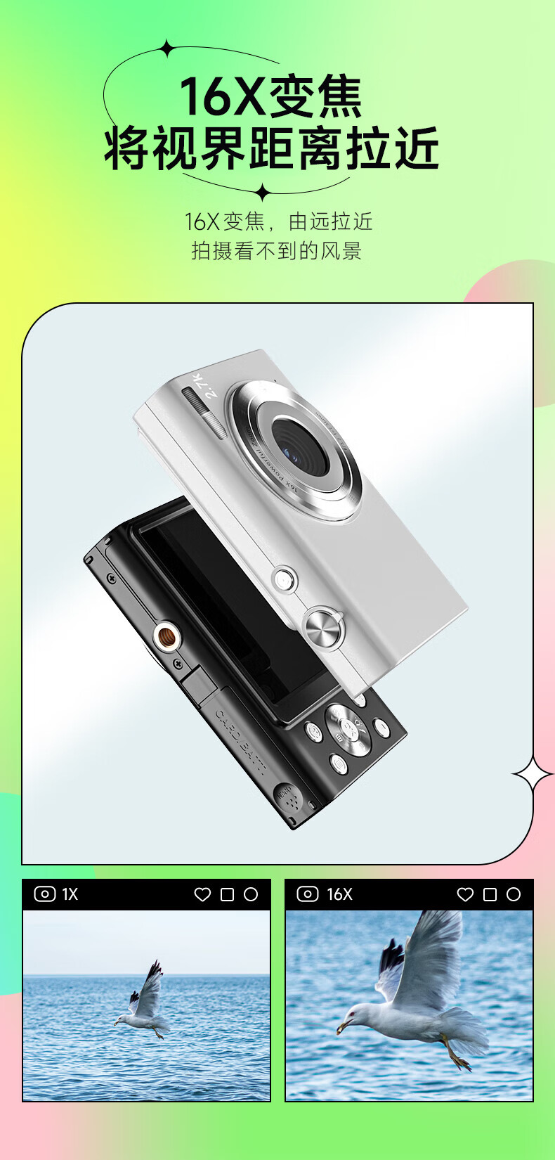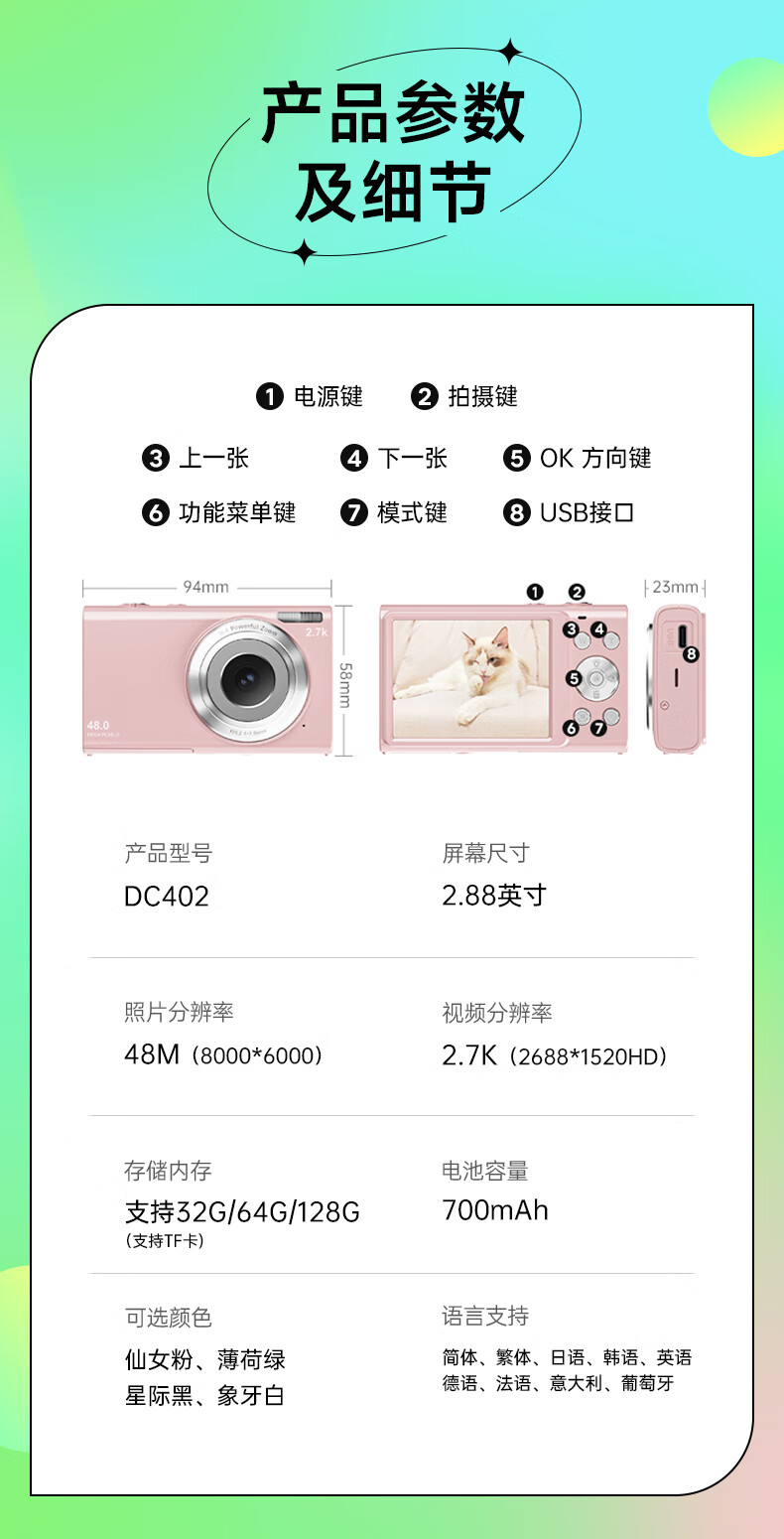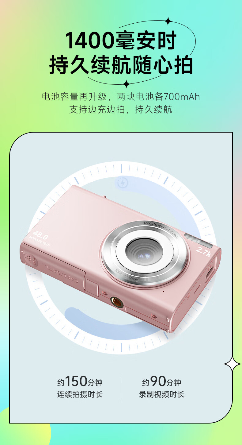 松典(SONGDIAN) 数码相机学生高中生迷你ccd小卡片机高清微单校园照相机 象牙白 64G 内存 自营