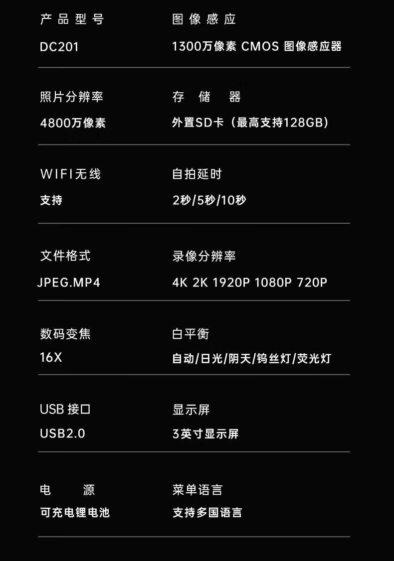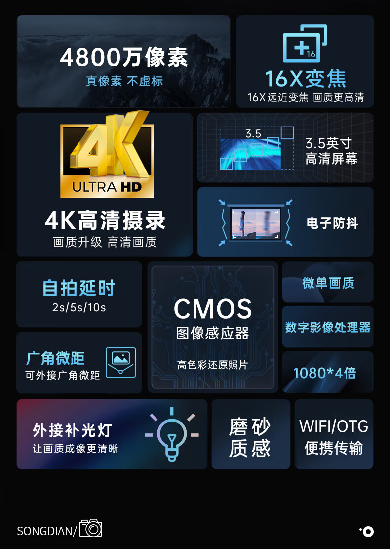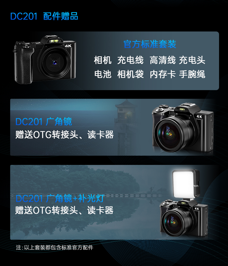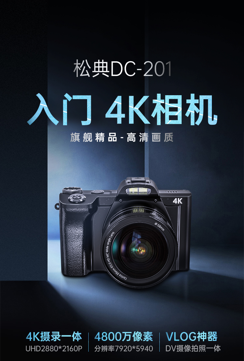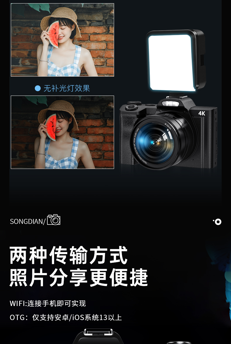 松典(SONGDIAN) DC201 数码相机入门级4K单反微单傻瓜照相机vlog高清视频 官方标配+广角镜+补光灯 128G 内存 自营