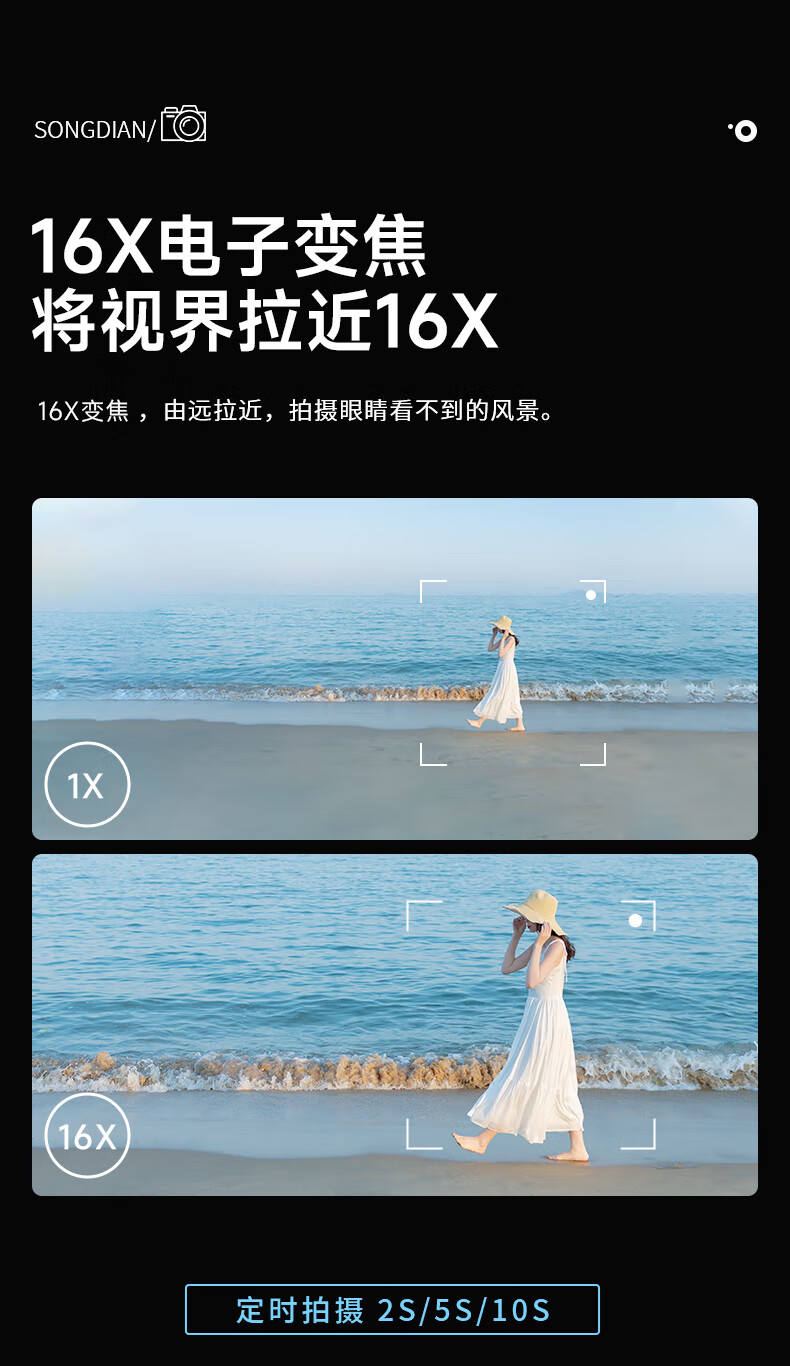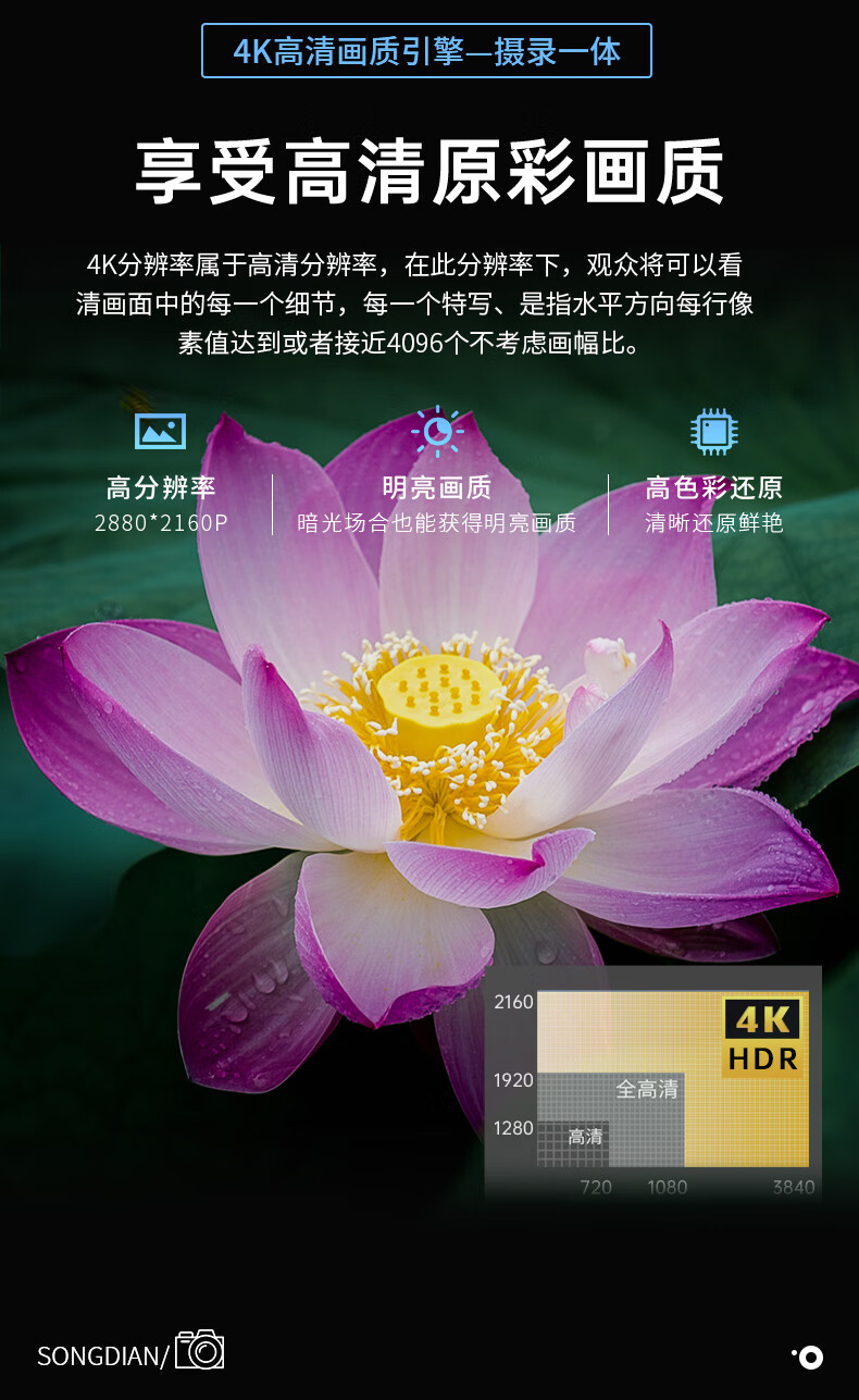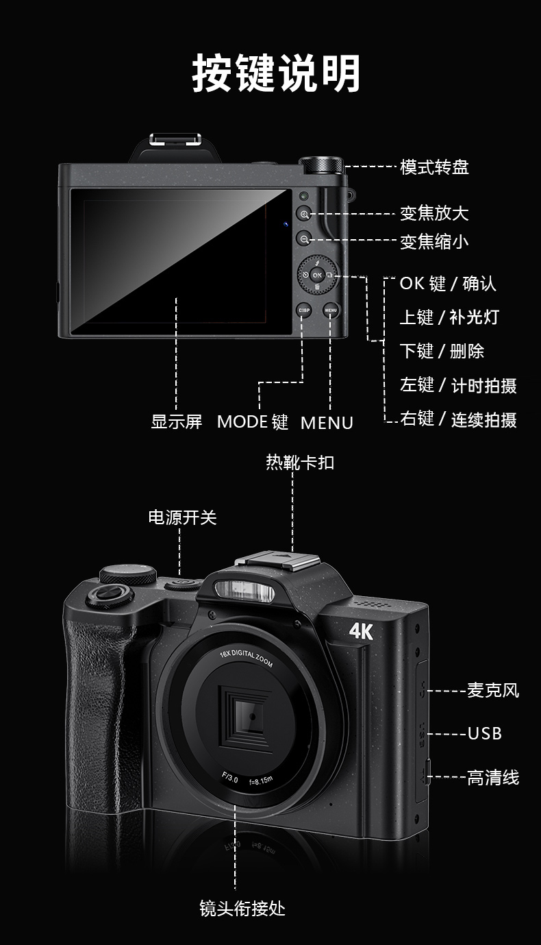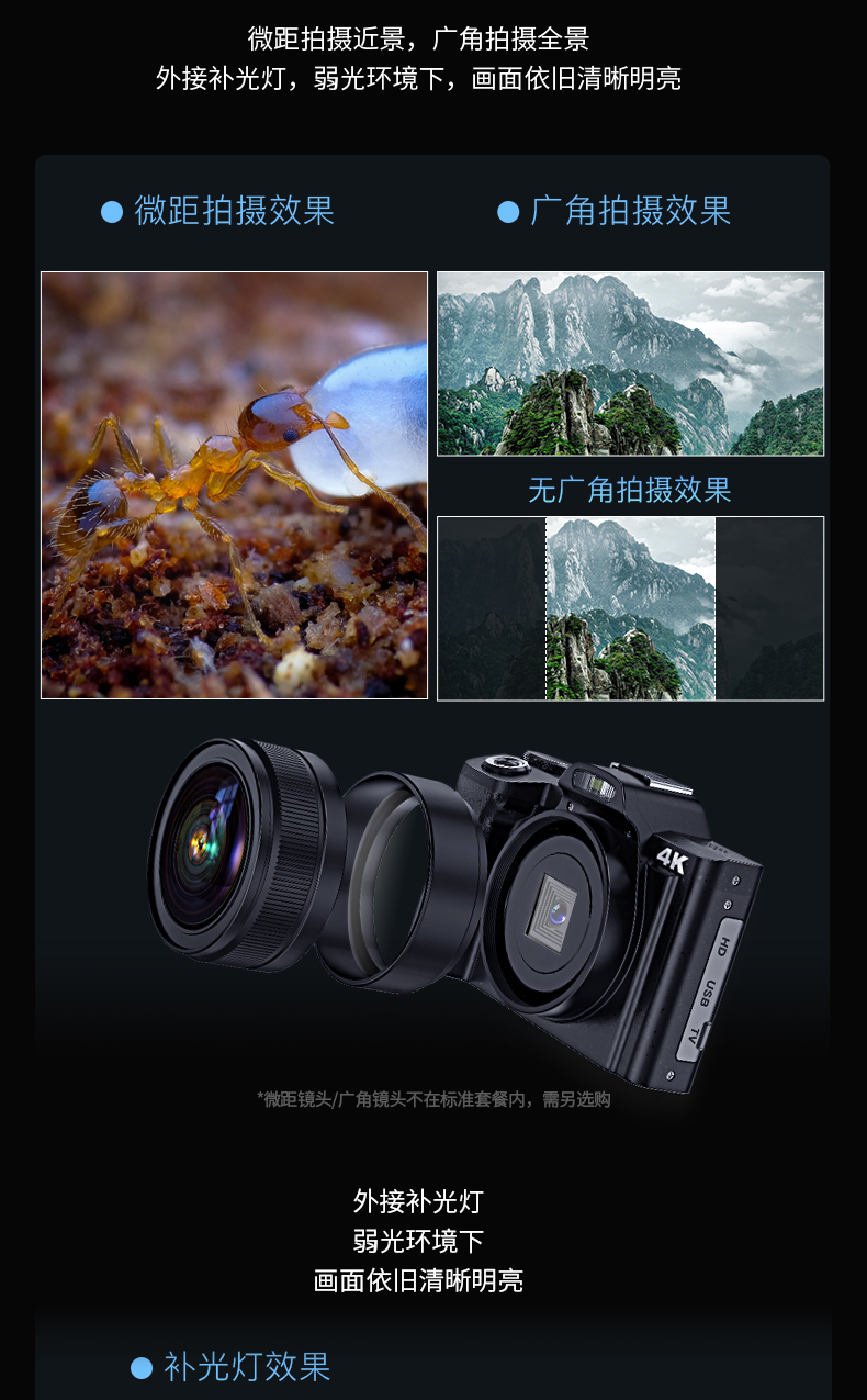 松典(SONGDIAN) DC201 数码相机入门级4K单反微单傻瓜照相机vlog高清视频 官方标配+广角镜+补光灯 128G 内存 自营