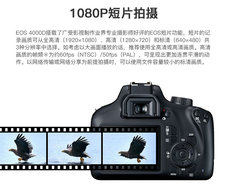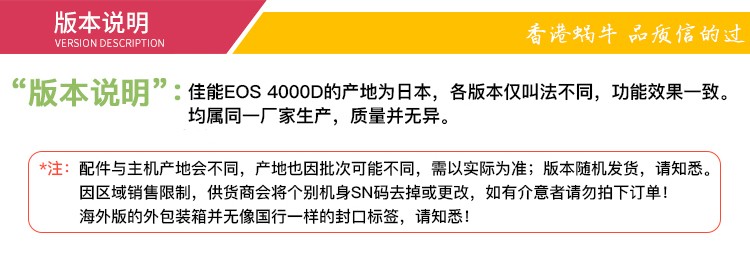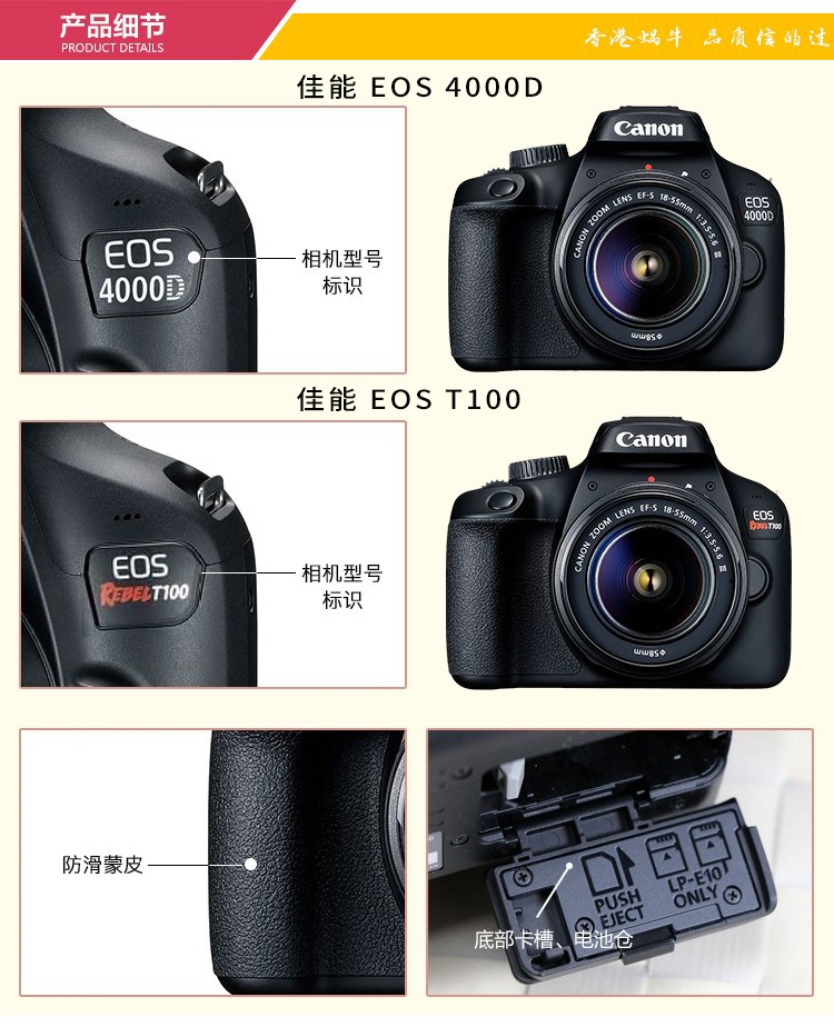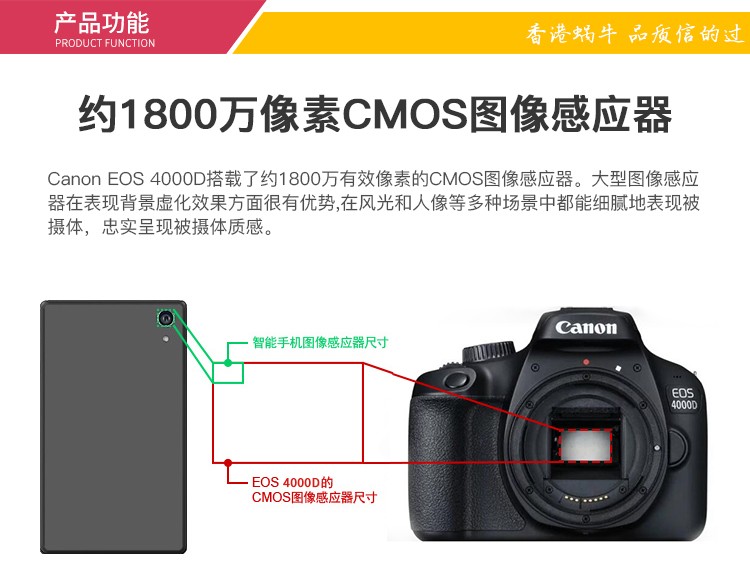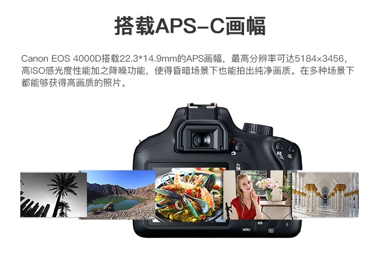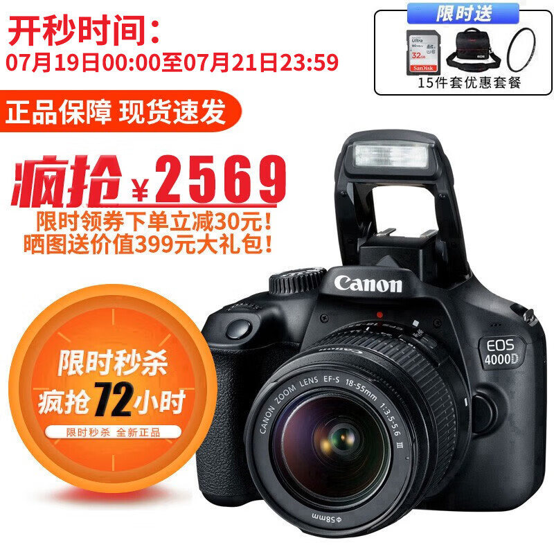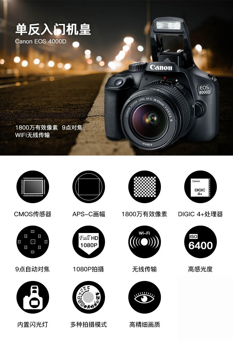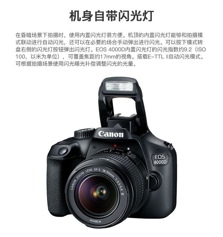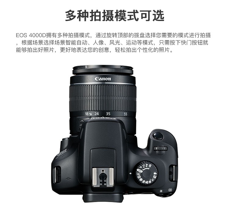 佳能(Canon) EOS 4000D 单反相机 APS画幅 入门级高清数码照相机 套机 单机+18-55mm III镜头 保税仓发货 自营