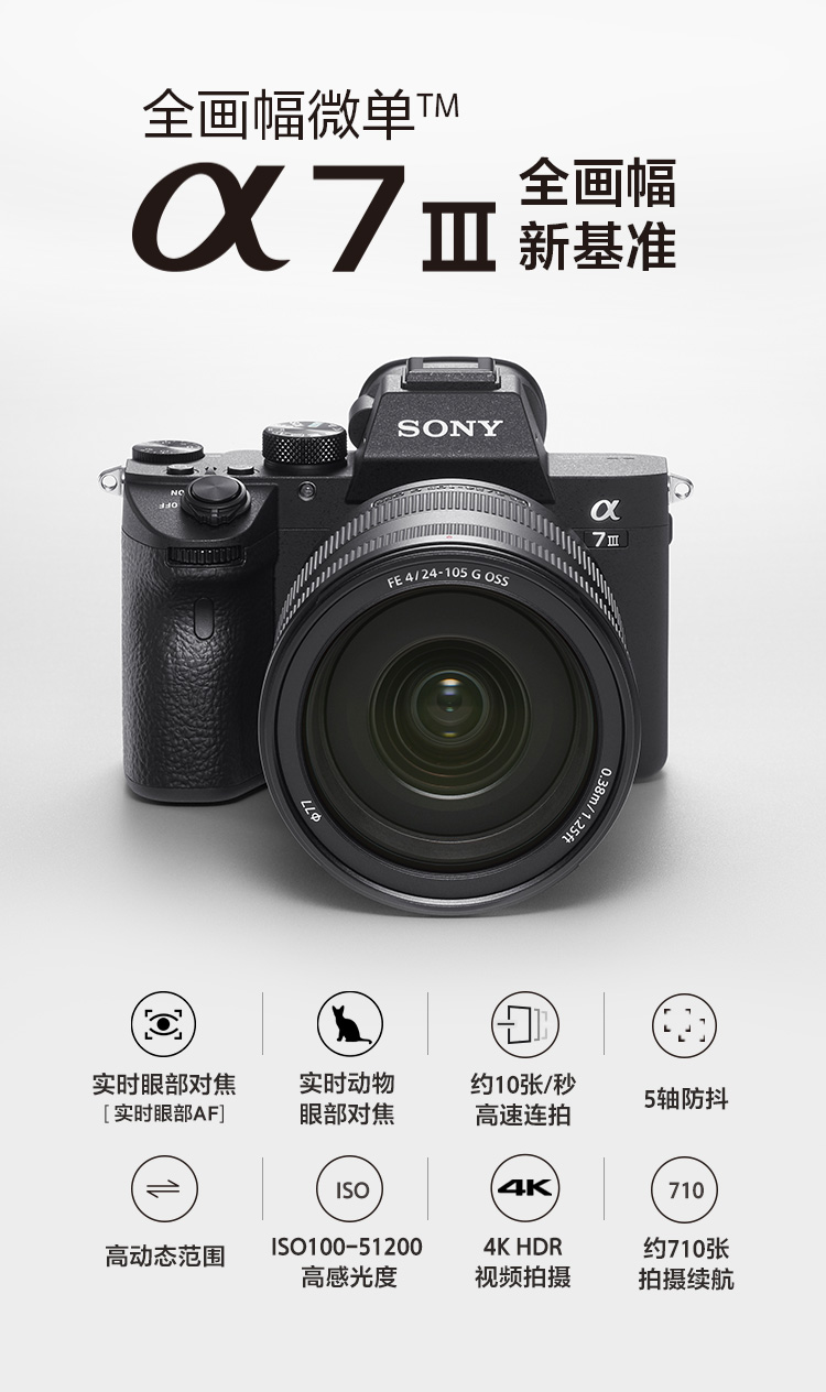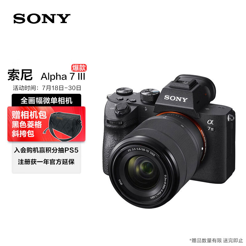 索尼(SONY)微单相机全画幅标准套装(约2420万有效像素 5轴防抖 a7M3K/A73)Alpha 7 III(7M3K) 自营